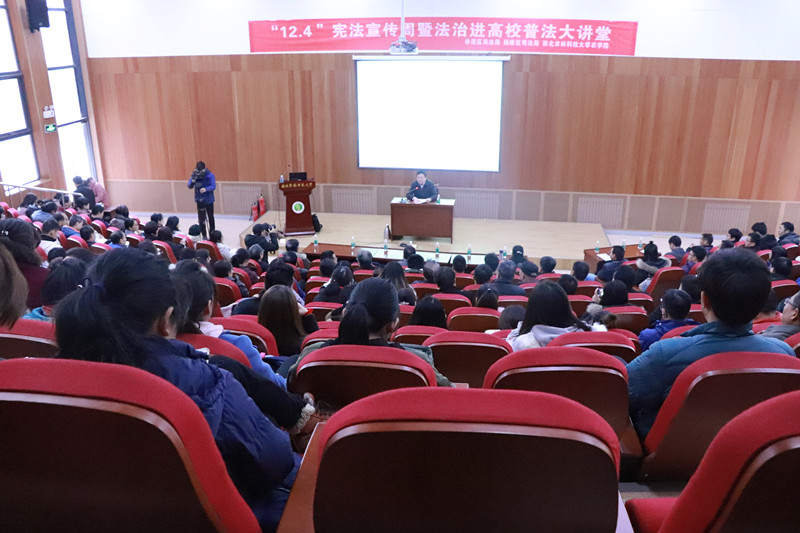 12月5日,由杨凌示范区普法办公室、杨陵区委依法治区办公室主办,3200威尼斯vip承办的以“弘扬宪法精神,建设平安校园”为主题的“12.4”国家宪法日法治大讲堂进高校系列活动在威尼斯vip官网隆重举行。原陕西省公安厅刑侦局局长,现任陕西省公安厅巡视员吴仲飞应邀为威尼斯vip官网师生做了一场精彩的普法宣传教育专题报告会。