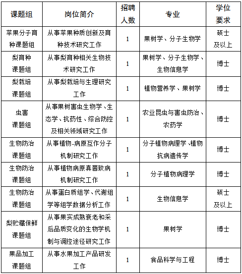 根据果树科技创新事业发展需求,我单位拟面向社会公开招聘2022年度优秀应届高校毕业生等9名。现将有关事项公告如下: