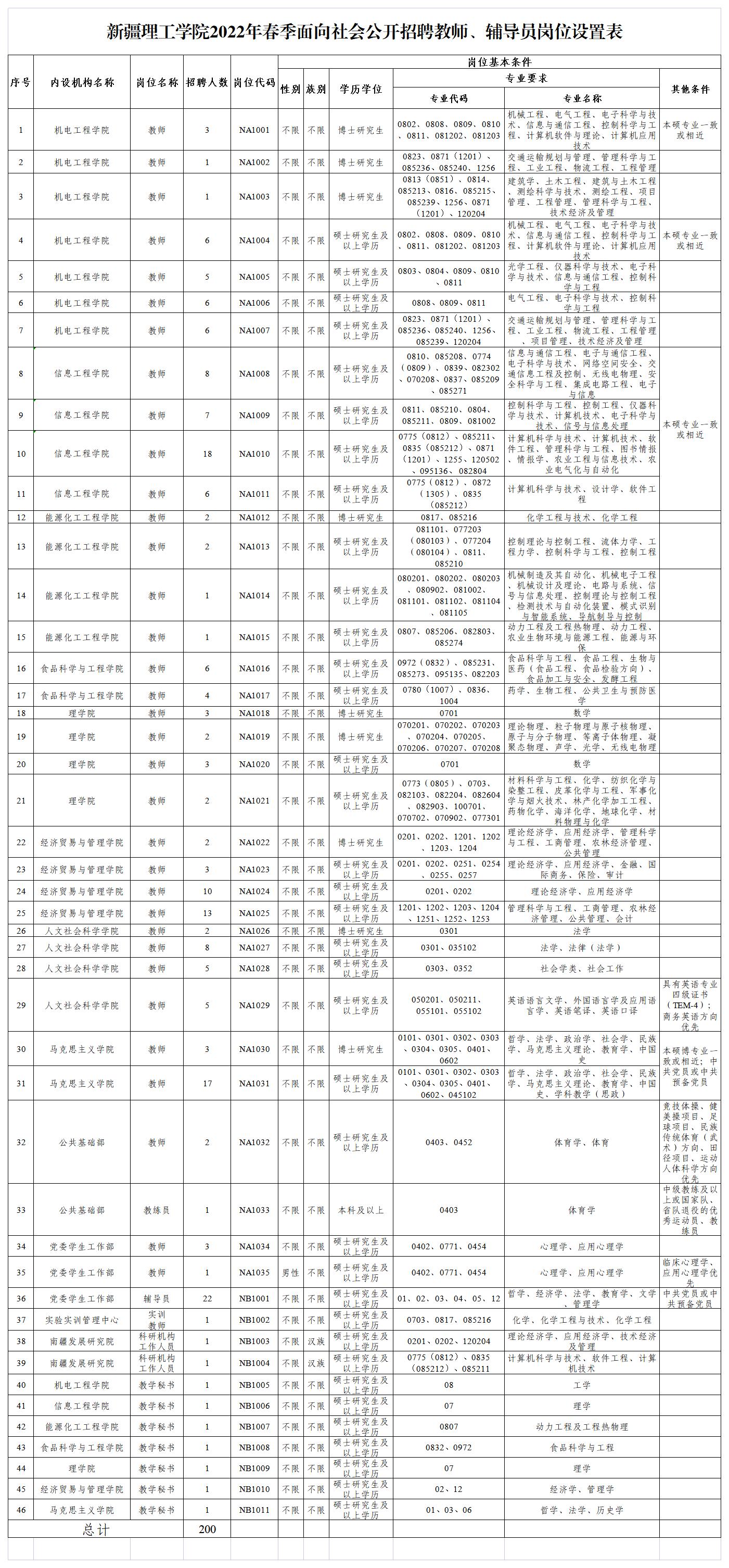 新疆理工学院2022年春季面向社会公开招聘教师169名、辅导员22名、科研机构工作人员2名、教学秘书7名。