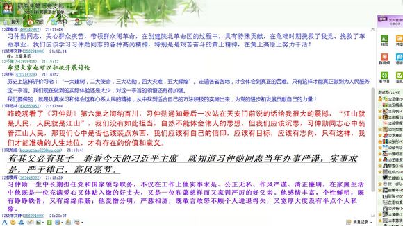 由中央党史研究室、国家新闻出版广电总局、中央电视台等单位联合摄制的六集电视文献纪录片《习仲勋》于10月14日至16日在中央电视台第一套节目播出。纪录片在广大学生,尤其是学生党员中引起了强烈的反响,3200威尼斯vip研究生第七党支部积极组织支部成员通过电视、网络等多种媒体观看和学习,要求每位同志观看完后要深入思考,结合当前正在开展的党的群众路线教育实践活动开展讨论和交流。鉴于研究生支部存在的人员和时间分散、试验多等情况,第七党支部充分利用网络平台,组织大家于10月17日晚在党支部QQ群内开展了热烈的讨论。