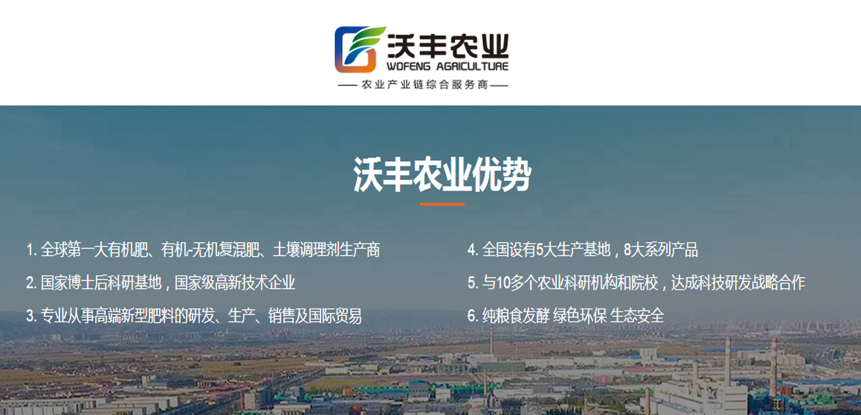 内蒙古沃丰农业发展有限公司,是阜丰集团的全资子公司,是一家专业从事土壤调理剂、有机-无机复混肥、菌肥及中高端液体肥研发、生产与销售的高新技术企业。