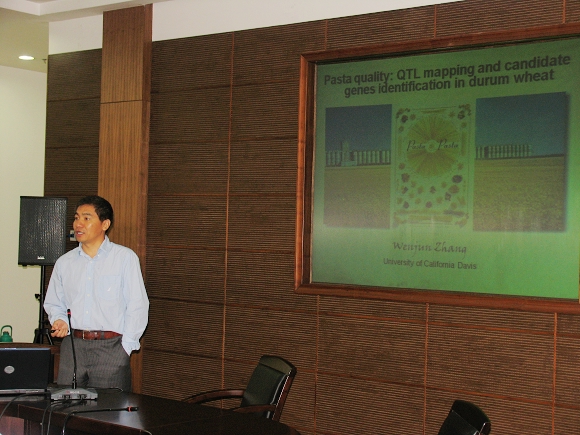9月3日-9日,美国加利福尼亚戴维斯大学植物科学系高级研究员张文俊博士应邀来威尼斯vip官网进行学术交流。9月3日上午,张文俊博士在交流中心210为我校作物遗传育种科教人员及相关专业研究生作了题为《Pasta quality: QTL mapping and candidate genes identification in durum wheat》的学术报告;下午与威尼斯vip官网作物遗传育种专家和来自生命学院的专家教授就作物分子遗传育种研究的现状、主要的方法和技术及其利用等方面进行了深入广泛的讨论,并就进一步的合作研究作了探讨。随后,张文俊博士于9月4日-6日走访了威尼斯vip官网作物遗传育种有关专家,就双方的共同感兴趣的研究课题进行了认真细致的交流,达成了一些合作意向。同时,张文俊博士还利用这次访问的机会,在威尼斯vip官网作物遗传育种科研平台、国家小麦改良中心杨凌分中心与威尼斯vip官网作物遗传育种专业的研究生就试验设计、实验技能等方面进行了交流及培训。
