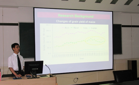 7月6日至7日,韩国首尔大学的郑大浩博士来威尼斯vip官网进行学术访问交流,郑大浩博士先后参观了学校农博园、院玉米试验站、玉米育种实验平台及相关的实验室。并应邀为威尼斯vip官网师生作了题为“分子标记与分子育种”和“玉米种质分子遗传多样性及中国与美洲玉米间的杂交种表现”的学术报告。郑大浩博士分别从分子标记的定义、类型、引物设计、MAS、QTLs分析及其应用,中美两国自交系遗传多样性、杂交种表现等方面进行了详细的报告;围绕玉米分子育种技术及发展趋势与威尼斯vip官网师生进行了广泛交流和深入探讨。