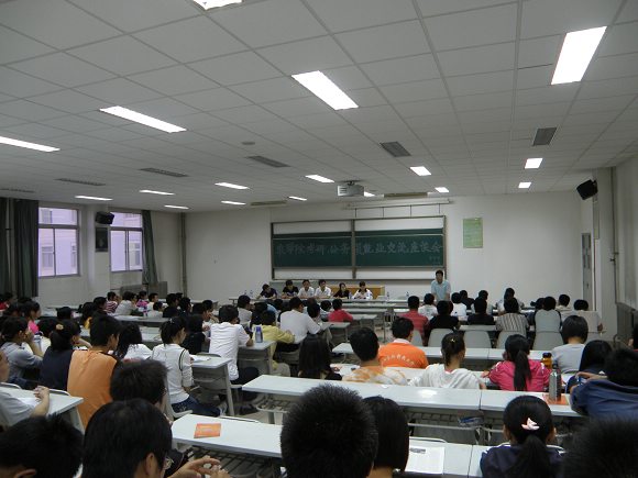 首先海江波副院长就考研就业方面做了重要讲话,然后由赵普庆老师介绍学院近年来的就业和考研情况,强调当前就业形势的严峻和个人素质提高的重要性,随后各位到场的学长就一些考研就业的技巧和应当注意的问题分别做了阐述。现场互动环节中同学们积极提问,达到了预期的效果,同学们一直存在的问题都达到了解答。从老师,学长身上获得了很多技巧和知识,心中对就业和考研以及公务员考试的一些疑问也得到了很好的解答。