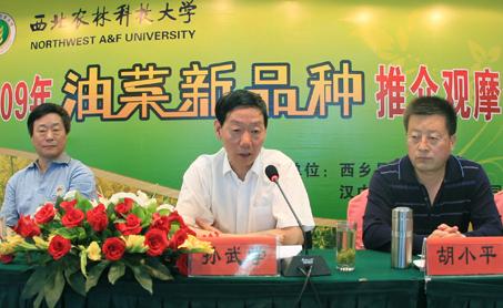 孙武学校长在学校2009年油菜新品种推介观摩会上强调
