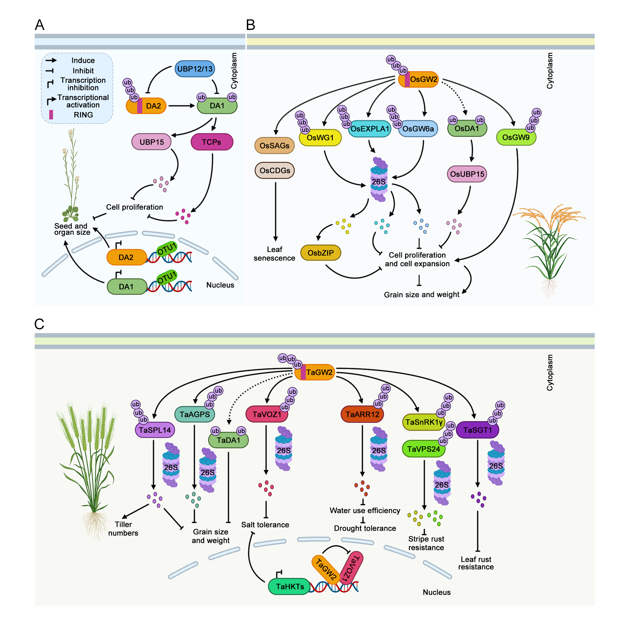 DA2、OsGW2和TaGW2调控籽粒大小及胁迫响应的作用机制