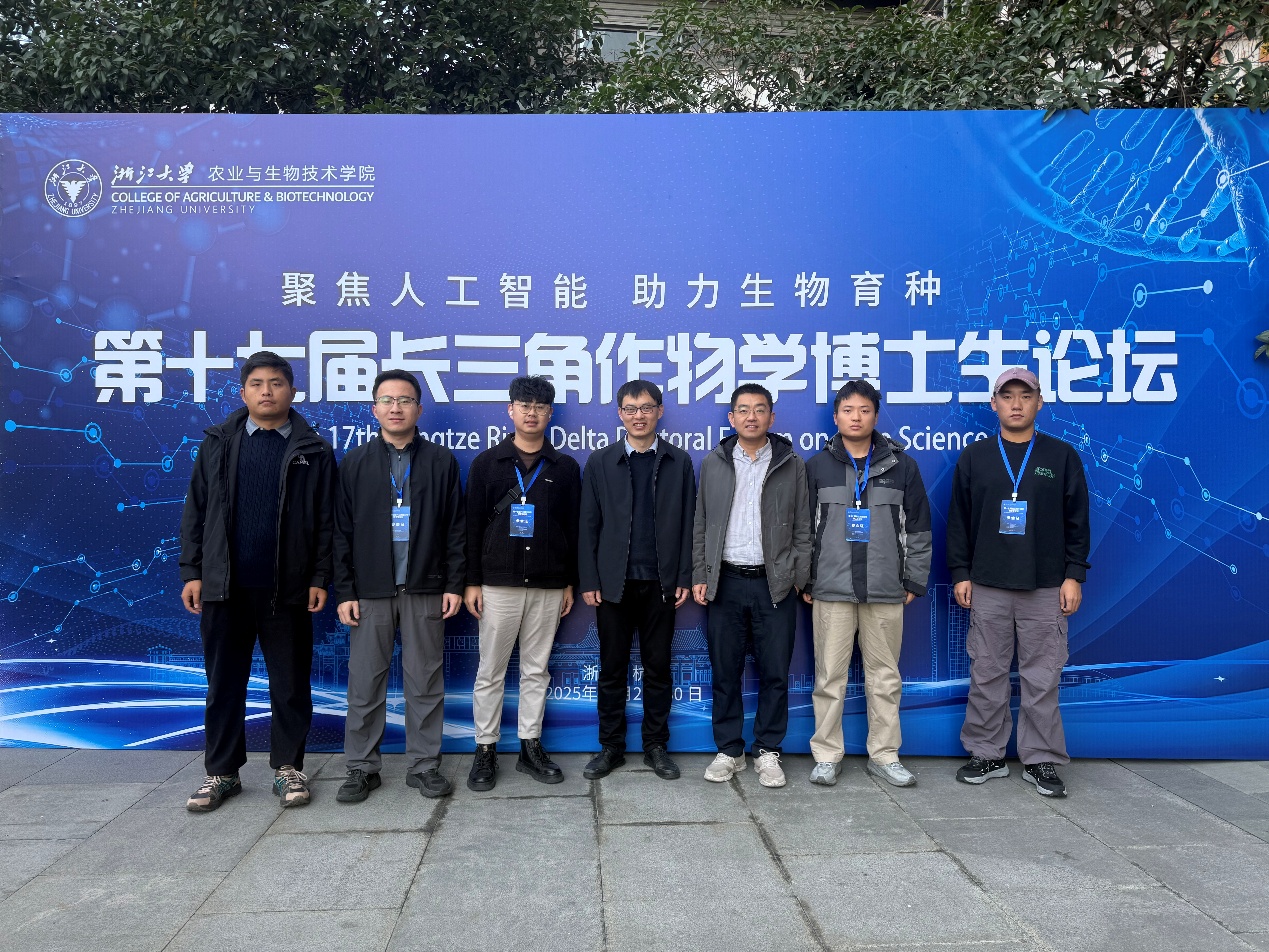 2025年11月28日至30日,由南京农业大学、浙江大学、扬州大学联合主办,浙江大学农业与生物技术学院承办的第十七届长三角作物学博士生论坛在杭州召开。论坛以“AI赋能生物育种,驱动农业新质生产力”为核心主题,聚焦AI+绿色生产、AI+基因组选择、AI+基因编辑等前沿方向,为全国作物学领域青年学者搭建了学术交流平台。威尼斯vip官网副院长聂小军教授和王晓明副教授及6名博士生参加了本次论坛。