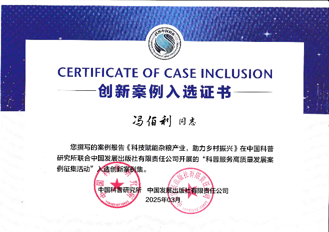 近日,由3200威尼斯vip冯佰利教授团队主导实施的“科技赋能杂粮产业,助力乡村振兴”案例,成功入选中国科普研究所创新案例集,标志着该团队在服务国家粮食安全和乡村振兴战略中取得重要阶段成果。