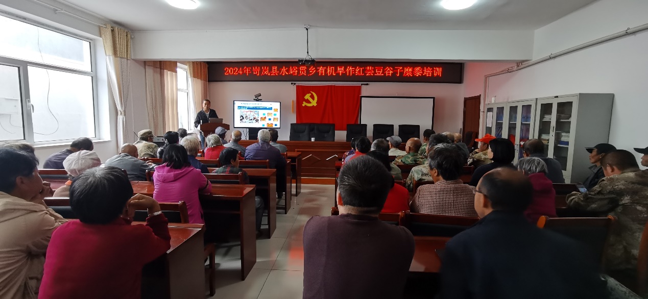 专家组一行分别在岢岚县大涧乡、水峪贯乡有机旱作生产基地,对当地种植户进行了专业技术培训,冯佰利教授和高小丽研究员分别讲授了红芸豆、糜黍、谷子优质高效生产技术,贾耀林总经理从肥料的高效利用角度详细介绍了有机肥、缓释肥和化肥的合理施用技术,李吉虎副局长解读了高标准农田建设政策,游爱新副局长介绍了有机旱作生产基地建设规模和应用的技术模式,陈伟科长强调了轮作倒茬、减肥减药的有机旱作耕作方式对提高当地农产品品质和收益的重要性。随后专家组一行与种植大户一起来到田间,观摩了有机旱作技术模式应用效果,解答了农民在生产中遇到的问题。