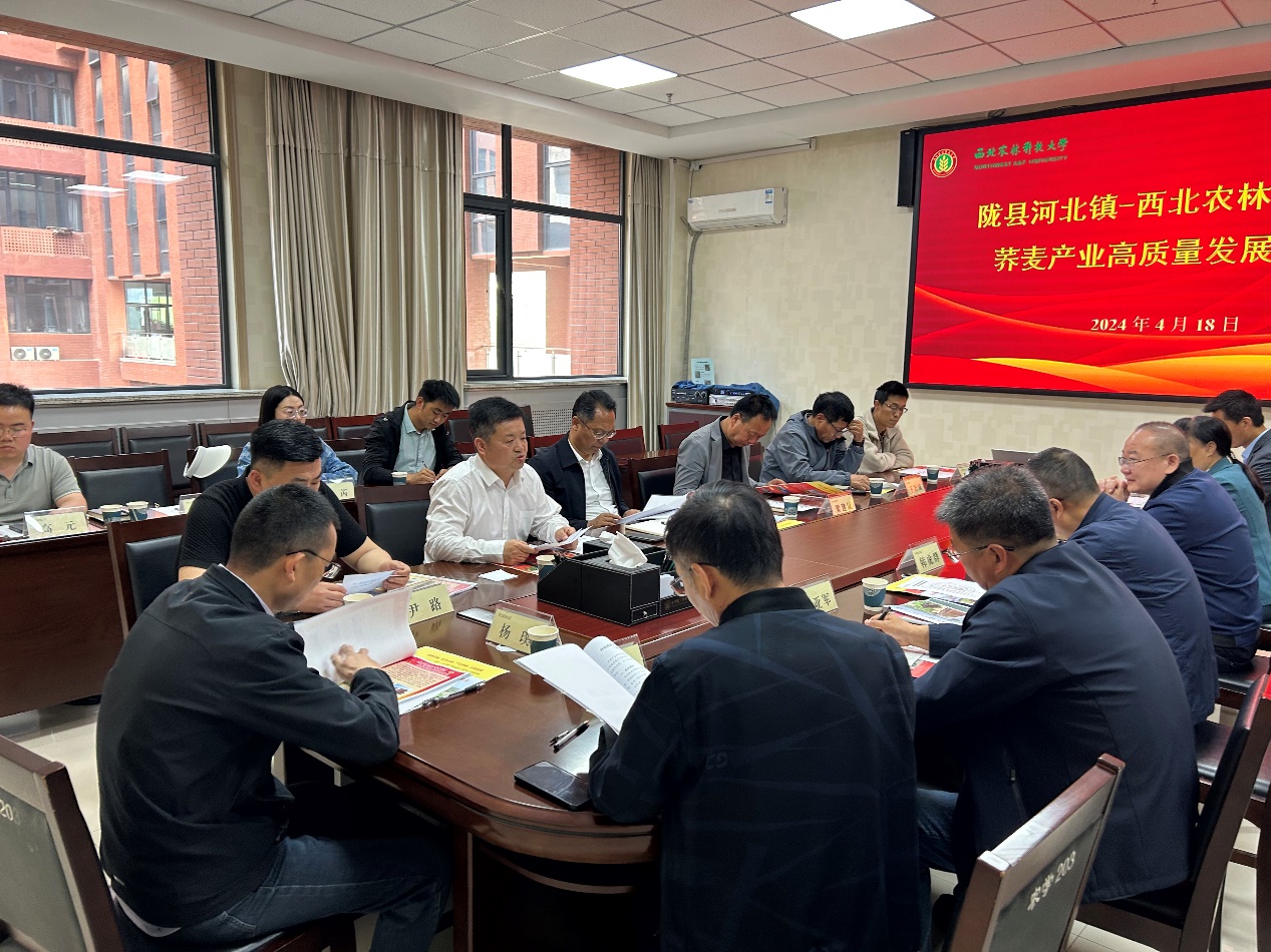 为了推动陇县河北镇荞麦产业高质量发展,4月18日,陇县政协主席梁治军、河北镇党委书记闫军春等一行到威尼斯vip官网进行考察座谈,新农村发展研究院副处长韩虎群及威尼斯vip官网王东副院长、奚亚军教授、高小丽研究员、高金锋副教授、张超副教授、杨璞副教授参与座谈,会议由王东副院长主持。