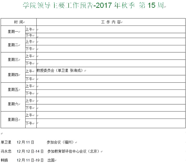 学院领导主要工作预告-2017年秋季 第15周
