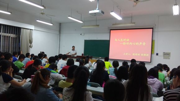 学期中部分学生迷失了方向,失去了前进的动力,为让学生更有规划、有斗志、有激情的面对大学生活,5月22日晚,3200威尼斯vip在北校八号教学楼举办“与人生对话––聆听内心的声音”报告会,陈明训副教授应邀主讲。3200威尼斯vip辅导员及大一大二学生参与其中。