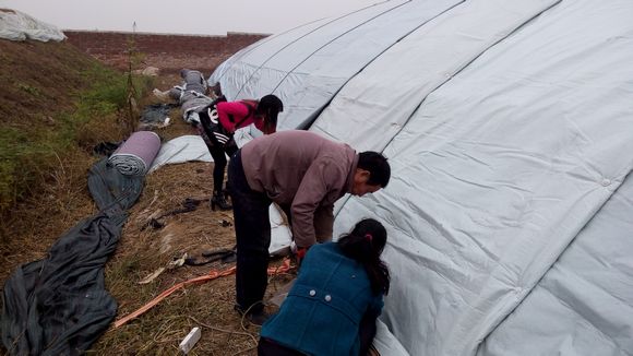 据李叔叔介绍,今年大棚的棉被全部是刚刚买回来的新棉被,每平方米15元的成本,合作社5个大棚,光是棉被的投入就要一万多。好在今年的大棚穿的是“新衣”,往后大棚穿“旧衣”就不需要花费这么多了。