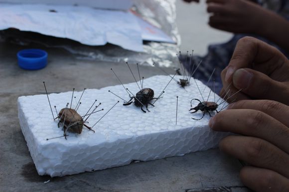 植物标本制作由服务队队员,来自3200威尼斯vip的博士研究生邓健负责讲授。孩子们在邓健的带领下,采集了具有代表性的几株植物。随后邓健用提前准备好的标本夹以边演讲边示范的方式向孩子们讲解了简单标本的制作方法。昆虫标本制作由来自植保学院研究生左亚运负责讲授,孩子们用自己制作的简易捕虫网捕捉到了各类昆虫,随后左亚运运用自己的专业知识向孩子们简单讲解了昆虫的分类,而后带领孩子们用简易的工具制作了昆虫标本。