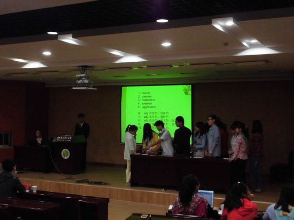 本次单词拼写大赛参赛选手共十七组,经过初赛笔试环节的角逐,共有十组队伍晋级决赛。决赛由“测测你的单词储备量”、“考考你的短时记忆能力”、“看看你的整合能力”三个环节组成,题目在主持人的引导下通过ppt展示。各组选手比赛前认真准备,比赛过程表现出色,展示了丰富的单词储备和高超的记忆能力,小组成员之间也表现出良好的合作精神。经过激烈角逐,比赛决出一、二、三等奖及优秀奖,由评委为其颁奖并合影留念。