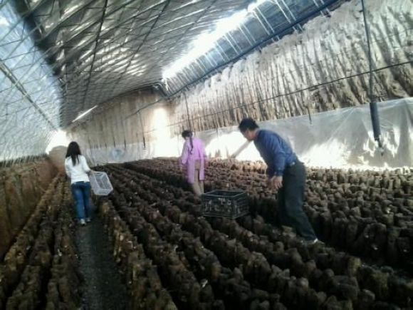 香菇棚里采摘忙