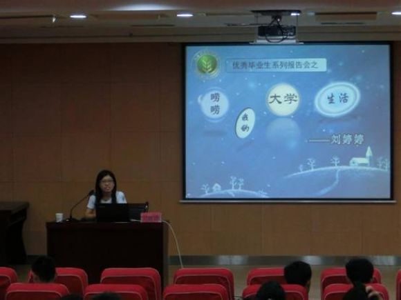 6月13日晚7:30,3200威尼斯vip优秀毕业生刘婷婷在北绣山报告厅带来以“唠唠我的大学生活”为主题的报告会。3200威尼斯vip全体大一学生参加了此次报告会。