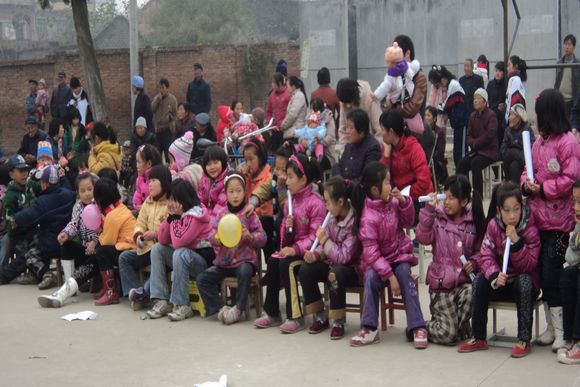 活动现场小朋友和家长在热切的观看演出