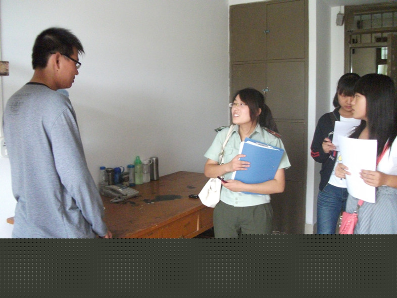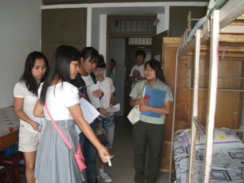 9月3日中午,学生会各部在辅导员王娜老师的带领下,对11级军训新生的内务整理情况进行了一次大检查。