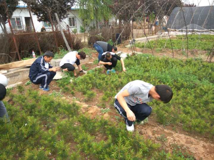 了解到除草的诀窍以后,队员们拿起锄头和铲子开始工作,由于是在被塑料纸包裹的大棚中进行,大棚的高密封性使得棚内温度非常高,而且松树苗的针叶很扎手,队员的胳膊都出现了很多红点,但是大家并没有叫苦叫累,他们分工明确,工作认真,虽然汗水湿透了衣服,泥土弄脏了鞋子,但是他们脸上洋溢着喜悦笑容,因为付出,所以有收获,有幸福。