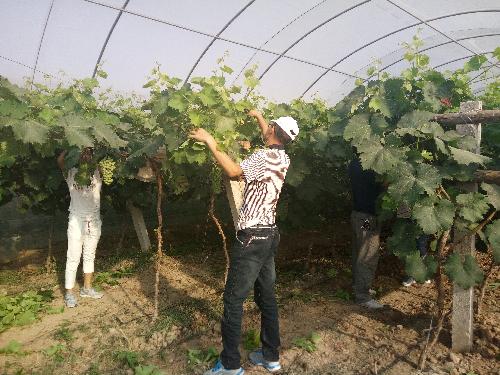 待到下午五点五十,天气凉快了一些,负责人便让同学们进入大棚中给葡萄进行打尖。因为葡萄长得太快,藤蔓已经长得很高了,但是大家都非常努力、认真地干活。干了一个多小时,由于棚内温度太高,负责人就请同学们品尝了大棚内已经成熟的葡萄,同学们发表了自己对葡萄品质的认识。太阳将要落山,同学们满载着笑容回学校了。