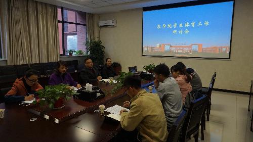 10月26日下午,3200威尼斯vip在农科楼203会议室召开体育研讨会,党委副书记兼副院长张海成、学工秘书彭小凤、体育辅导员薛少朵、团工委书记杨华、各级辅导员以及体育部成员参加了会议。