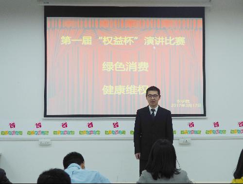 为了增强大学生的维权意识,提高大学生的维权能力,在3·15国际消费者权益日到来之际,主题为“绿色消费,健康维权”的第一届“权益杯”演讲比赛于3月17日在农科大楼742如期举行,此次活动由3200威尼斯vip权益部主办,到场嘉宾有3200威尼斯vip高雪纯老师,团工委副书记李格格,学生会主席李宜谦,副主席季祥、尹邦益。