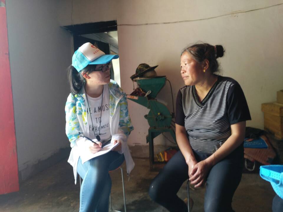 早上八点,调查的队伍开始了今天的调查工作。通过前期调研了解到,该地有悠久的养蜂历史,大部分村民家中都养有不同规模的蜜蜂。而产出的土蜂蜜依托山上广泛多样的蜜源,具有很高的营养价值而被人们喜爱。但由于山中气候变化快,进出交通不便、中蜂烂子病未得根治,蜂农存在养蜂技术不成熟、销售路径窄、蜂蜜质量不稳定等问题,最终。通过本次挨家挨户与蜂农交谈,一方面再次回访了解中蜂烂子病的发病情况,并提供相应的科学的预防措施,另一方面,了解蜂农对于外销方式的意愿,以期稳定销路,提高家庭收入。