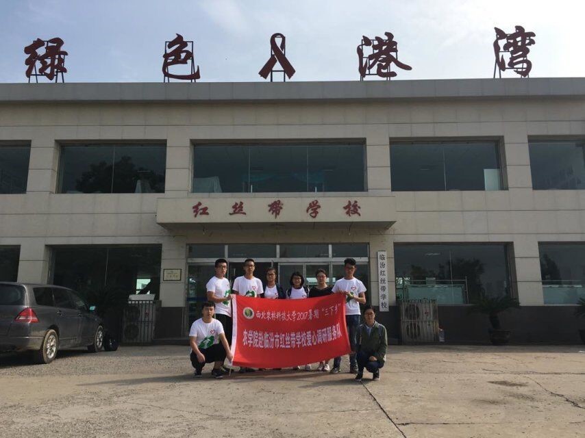 这一天天气晴朗,3200威尼斯vip赴临汾市红丝带学校爱心调研服务队的大学生们经过40分钟的车程,从临汾市区到了红丝带学校所在乡镇,然后再向村庄里步行半小时后,终于见到了这所让他们心系了整人暑假的学校。这所学校的周围像个原始森林一样,花鸟成群,树木茂盛。