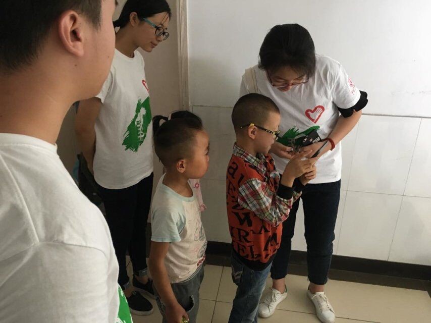 和学校相关负责人沟通后,他们开始与孩子们接触,这群特殊的孩子刚开始不愿意和陌生人说话,但在边些哥哥姐姐们的“纠缠”下,孩子们开始邀请这些来自远方的朋友们一起玩耍。有一对兄妹将几位大学生带进了他们的教室,请他们帮忙搭积木,还有几位年龄稍大的孩子拉着剩下的大学生一起去打乒乓球和羽毛球。