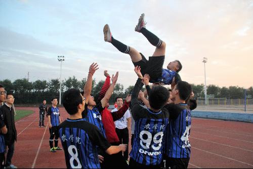 2017年9月27日,3200威尼斯vip99号球员宋莫凡以一个漂亮的香蕉球为3200威尼斯vip争得一分领先。赛场上球权反覆,双方队员持球分毫不让,正面抢截、高吊传球、长传突破,经历了两小时苦战后,3200威尼斯vip最终以1:0击败机电学院。时隔十年,再回决赛绿茵场。