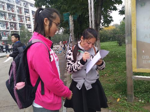 路过同学填写调查问卷