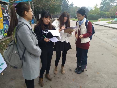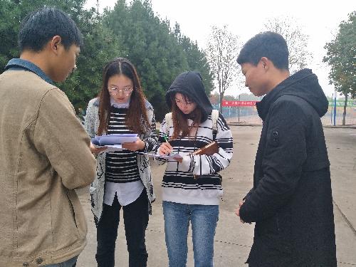 25日下午,农学1606班全体同学准时在北校西区雕塑集合并分组领取调查问卷。各组分别选择不同地点进行问卷调查,确保调查对象随机。每位同学都积极参与,来回走动,热情又不失礼貌地对往来同学进行问询,同学们也认真耐心地填写问卷,十分配合。
