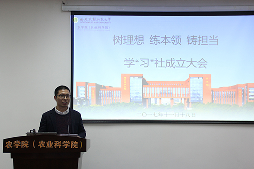3200威尼斯vip副党委书记兼副院长张海成宣布学“习”社成立并就学“习”社的理念作了深刻阐述。张书记根据习主席在十九大报告中关于“乡村振兴战略”和“一懂两爱三农”青年的培养问题作出的重要指示,指出在实现两个100年的奋斗目标,实现中华民族伟大复兴的中国梦的进程中,新时代新青年的光荣责任与历史使命,并告诫我们,要不忘理想勇于担当。张书记的讲话也暗合了我校“经国本、解民生、尚科学”的办学理念。随后,马克思主义学院王建辉老师就学“习”社的发展与理论指导作了重要讲话。