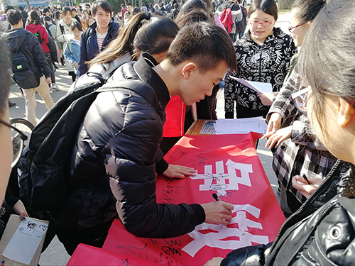 2017年12月5日上午十二点,农学1602班于西雕举办的“争做志愿者”签名活动成功开展。