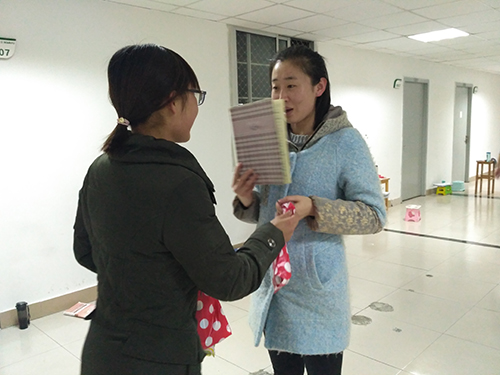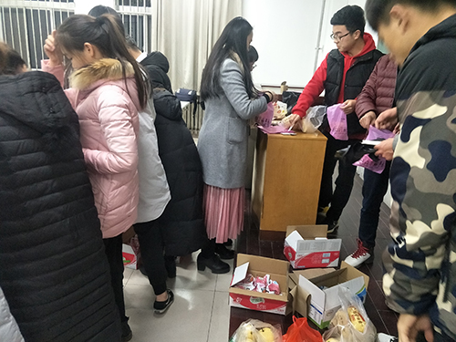 学长学姐们为了考研眼睛熬得通红,但是背诵的声音仍然洪亮有力,让我们感受到了他们的努力,他们的自信感染了我们,我们将礼物一个一个送到了他们的手上。他们大感意外,脸上露出了感动的微笑,看着他们开心的面容,我们心里也流淌着一股的暖流。
