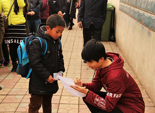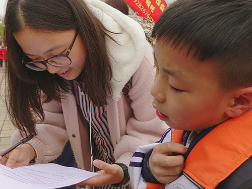 同学们与路上的孩子们积极互动