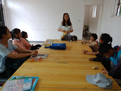 这次,志愿者们早早来到了孟寨村,一如既往的敲开了小孩子的家门,并将孩子们接到了教室。早先的一个小时里,志愿者先给未完成作业的孩子进行了功课辅导。做完功课,整理好书包,接着就是愉快的节目表演。孟利君、孟小利两姐妹用一首《母亲》打开了现场的气氛,温馨和美好。小朋友们开始唱起了自己所学过的歌,一首一首满载着童年回忆的歌响彻教室,在我们的耳边不停回荡。在同一所小学的四个小朋友也跳起了一段校园广播体操,“一二三四五六七八”淋漓尽致展现了孩子们纯真美好的校园生活。不同年级小朋友也将自己学过的唐诗大声地出来,多么地明朗响亮。后来志愿者们拿出了早已准备好的零食摊放在桌上,分发给每一个表演的小朋友。大家边吃边唱,其乐融融。