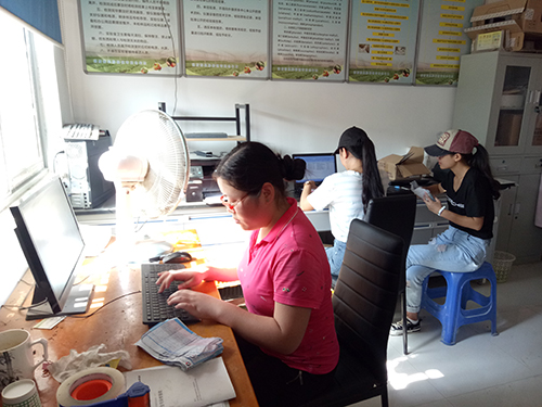 今天的任务主要是整理快递单,然后把快递信息录入电脑做出数据统计和分析。对于书记提出的要求,队长宫欣宇同学做好了记录以便告知所有的队员。在合作社负责人都安排好今天的事情过后,各小分队统一好流程便各自展开了行动。队伍内部也进行明确的分工,工作有条不紊的进行着。十一点左右,运货车返回了昌兴果蔬合作社。使者们上午的工作也快接近尾声,于是几名队员便去帮助运货车卸载物品。阿姨看到他们热心的帮忙却表现出满脸的心疼,说到:“你们去敲电脑就行,这里累,你们孩子不能累着。”队员们听了纷纷热泪盈眶,并表示他们都是大人了,来这里就是帮忙干活的,没有什么累不累。一车的货物在大家齐心协力的努力下卸载完毕,时间也接近中午,负责人与队长交代了几句后便准备返程了。