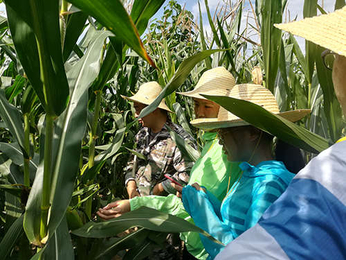 院系顶岗实习负责人宋瑜龙老师于8月2日下午到访公司总部,关心成员实习期间的日常生活,询问成员实习情况及心得体会。简单交流后,宋老师随小组成员一同前往位于绛帐镇原宝鸡市毛巾厂附近的玉米试验基地。带队的王永鹏学长强调玉米品种鉴定初选时应注意的株型、叶型、穗位、整齐度等观察指标,并就每个组合品种进行分析讲解。宋老师说道:“品种选育历时长久,经验显得尤为重要,要细心观察才可。”区域试验、对照分析,实践应用中的组合规划,恰到好处地验证了课堂理论知识学习的重要性。烈日当空,汗流浃背,蚊虫叮咬,体力殆尽,坚持跟随,认真听讲。也正是育种专家几十年如一日的默默坚守,才能够不断选育出优质高产新品种,助力农业,普惠大众。