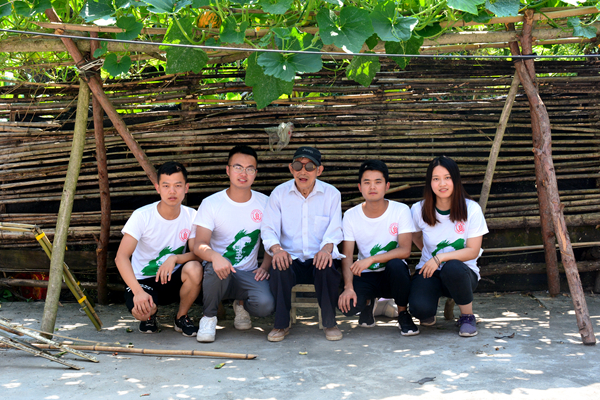 队员们和爷爷在瓜棚下又拍了一张