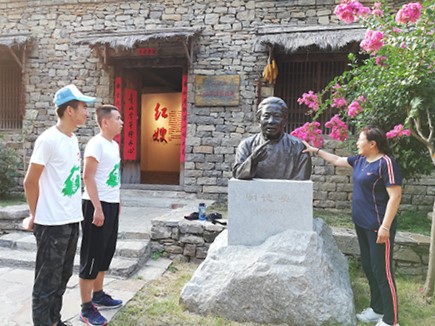 之后在队长的带领下,队伍来到“沂蒙大姐”李桂芳纪念馆,讲解员绘声绘色的再现了在1947年的孟良崮战役前夕李桂芳组织了沂蒙山区32名妇女在冰冷的河水里用自己的肩膀扛着门板在这里架起了火线桥的情景。