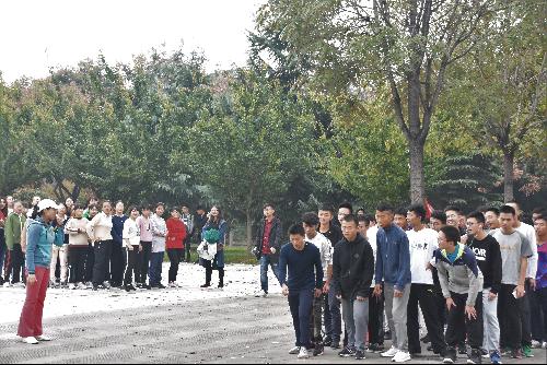 下午2点,队员们陆续来到北绣活动中心。秋风瑟瑟,却挡不住队员们的热情与激动。
