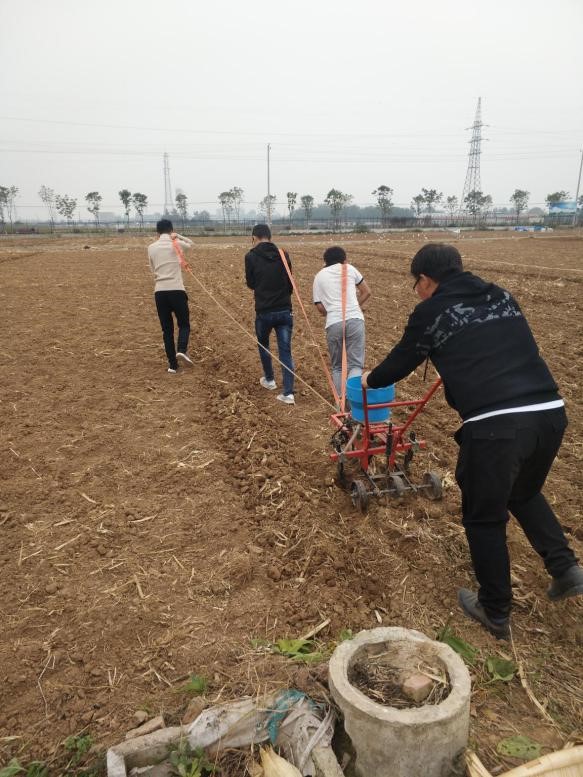 10月13日早上8:30,全员集齐,在标本区奋斗5个小时完成了一亩多地的全部播种任务。指导老师宋瑜龙老师指导并参加了播种的全过程。宋瑜龙老师说,他希望经历了这次大赛小组成员能学习到一些科研思维,而不仅仅是为了达到高产来种小麦。在老师的指导下选择在下雨的前一天播种,好的播种时间也为日后的高产丰收打下了基础。这次播种他们把地分成了5份,分别种了周麦18,西农268,西杂9号f2,小偃22,陕农33五个品种的小麦。采用机播和人播两种方法,来保证每个区域品种的纯良。在老师耐心的指导和帮助下,学习了划区、起垄、播种的方法,了解了小麦生长发育的历程。老师的耐心指导,组员的齐心协力,终于在下雨前把所有播种任务完成。