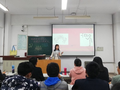 首先,在团支书吴光宇的主持下,大家简单回顾了党的十九大主要内容。通过观看视频,同学们了解了十九大之前五年我国所取得的重大成就。吴光宇同学借助幻灯片讲解,使同学们了解了党的十九大目标,熟悉了党接下来奋斗的方向,对党的十九大有了一个更加全面的了解。