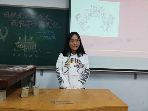 农学类1806班于2018年11月1日下午四点在N8304教室开展第二次团组生活动。班会的主题为“回顾党的十九大,西农学子说变化”。参与人员为武军老师以及农学类1806班全体同学。
