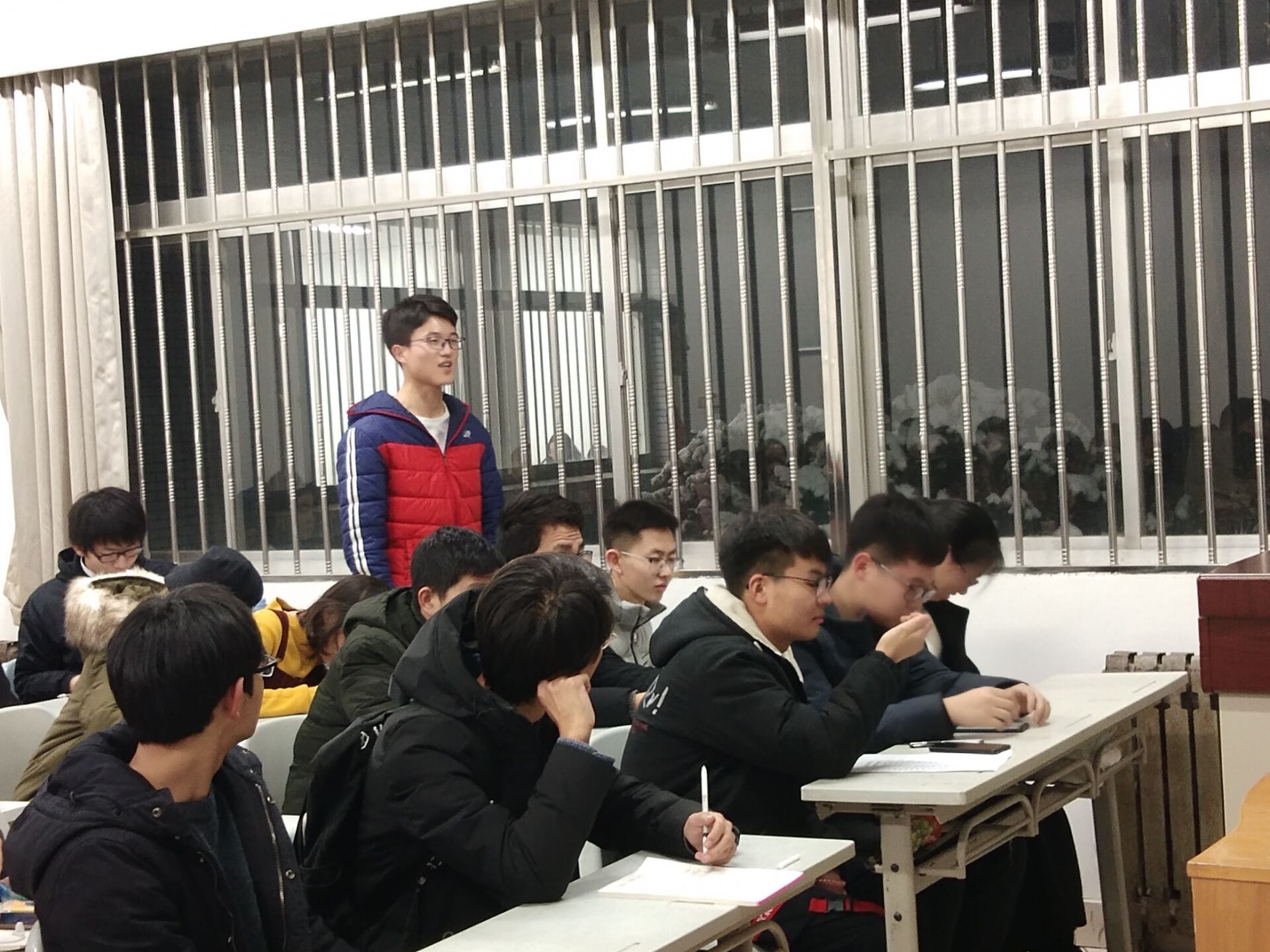 2018年12月28日晚,校权益中心、校纪检部、校生活部在N8120教室联合举行了夜访答疑活动。该活动通过听取同学们的意见,解答同学们的问题,了解平时工作中的不足,从而更好地为同学们服务,建设一个和谐融洽的校园环境。