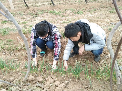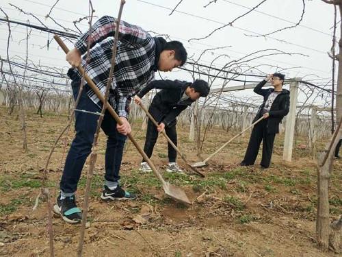 温暖的春天里,充满生机的不只是猕猴桃,还有坚韧的青草。猕猴桃的嫩芽还未在枝头大展身手,田地上的青草却已经轰轰烈烈的攻占了大片土地。在合作社负责人李爱霞女士的指导之下,3200威尼斯vip田园使者小分队的队员们迅速而有序的展开了猕猴桃园的除草工作。春天的草地格外茂盛,青草鲜绿的汁液和春日和煦的阳光一同洒在队员们的指尖上。在队员们的说说笑笑之中,太阳在西侧缓缓落下,汗水慢慢地爬上了队员们的额头上。在一整天的忙碌之后,猕猴桃园里的青草已经被勤劳的小队员们清理完毕。李爱霞女士不禁对队员们竖起了大拇指。