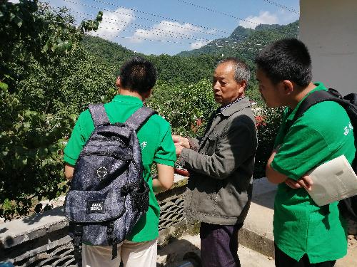 团队采用走访当地村民家的方式,了解当地农户的家庭收入来源,产业结构,以及目前面临的问题等。队员最先来到了汪老汉家中。老汉是村里的贫困户,他告诉我们,除了国家每年的养老保险和双女户补助,自己还有几亩枣皮树,每年靠着这些枣皮还能赚3000元左右。除此之外,他还在自己的林地种植一些天麻和猪苓,加上几株核桃树和板栗树,滋润的时候每年也有5000左右的收入。可是今年出现了大问题,一是山茱萸是两年一收,今年恰好是“小年”,没有收成,更严重的是今年野猪泛滥,天麻和猪苓都被野猪吃光了,自己的板栗也被糟蹋了,有时候它们还跑到村民家门口转悠,村民们害怕得连门都不敢开。