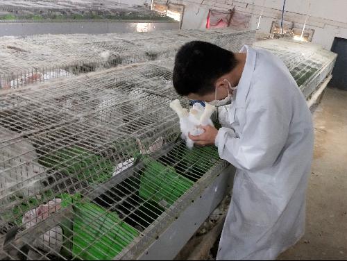 工作人员检查兔子情况